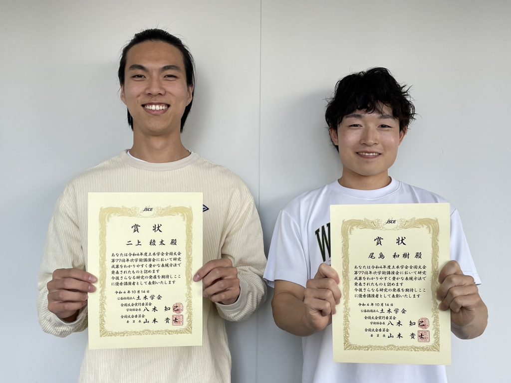 学生が土木学会全国大会第77回年次学術講演会で「優秀講演賞」を受賞